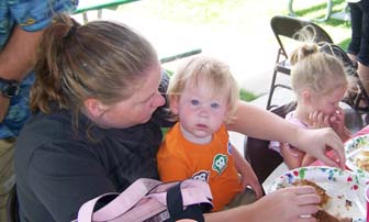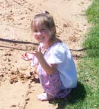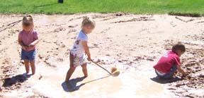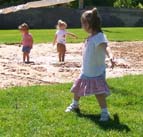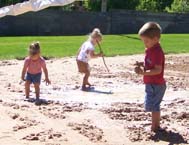 The sprinklers were on in the park and made mud on the volleyball court. The little ones had a great time playing in the mud.